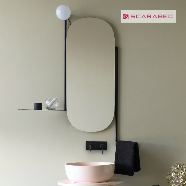Καθρεφ.40×90 L45 H90 Cm Με Πετ/Στρα, Εταζ+Λαμπα Scarabeo Black Matt