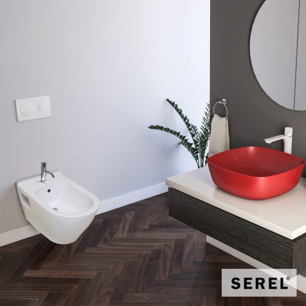 Λεκάνη Κρεμαστή Με Ενσωματωμένο Μπιντέ Smart Και Απλό Κάλυμμα 6001, Serel White