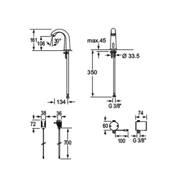 Ηλεκτρονική μπαταρία νιπτήρος μιας ροής για κρύο ή προαναμεμειγμένο νερό FLAMINGO FL20. Λειτουργία με μπαταρία 6 Volt – Conti Ελβετίας