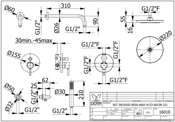 16010 Loba Κιτ Εντοιχ. Στρογγυλο Με Μικτη-Βραχιονα-Κεφαλη-Παροχ-Τηλ-Σπιραλ