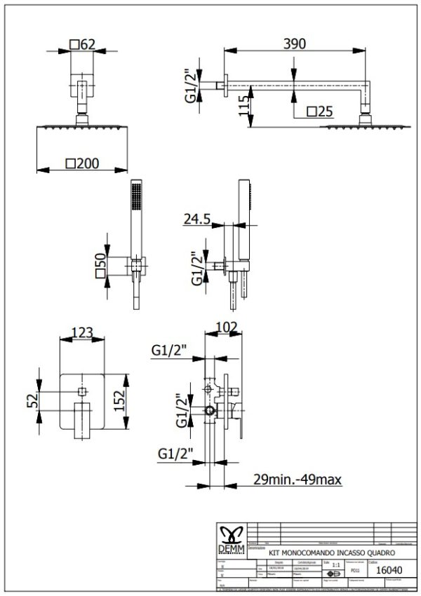 16040 Loba Κιτ Εντοιχ.τετραγωνο Με Μικτη-Βραχιονα-Κεφαλη-Παροχ-Τηλ-Σπιραλ