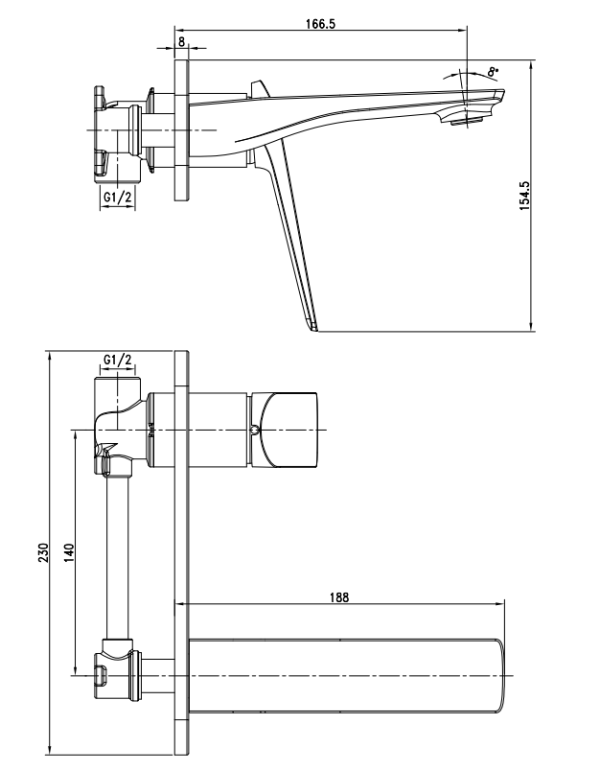 61005 Trend Μπαταρια Εντοιχισμου Νιπτηρα Χωρισ Βαλβιδα Pop-Up