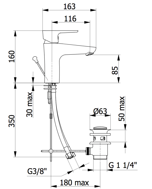 7810 Imola Μπαταρια Νιπτηροσ Με Βαλβιδα Pop-Up