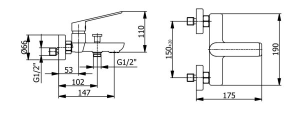 9900N Sleek Μπαταρια Λουτρου Με Τηλεφωνο & Σπιραλ Black Matt
