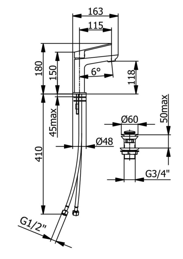 9910 Sleek Μπαταρια Νιπτηρα Με Βαλβιδα Pop-Up