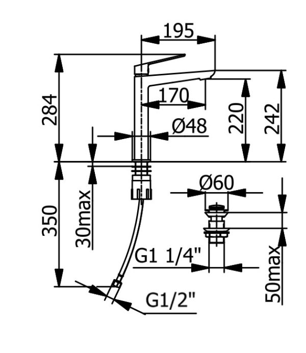 9914N Sleek Μπαταρια Νιπτηρα Ψηλη Με Pop-Up Black Matt