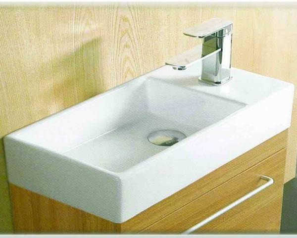 Νιπτήρας πορσελάνης τετράγωνος για τοποθέτηση σε πάγκο με οπή για μπαταρίας χωρίς υπερχείλιση.