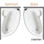 Μπανιέρα Ακρυλική Caronite Dove Με Σύστημα Υδρομασάζ (1,75Hp-8 Jet) 1550×950 Right, Carron Bath White