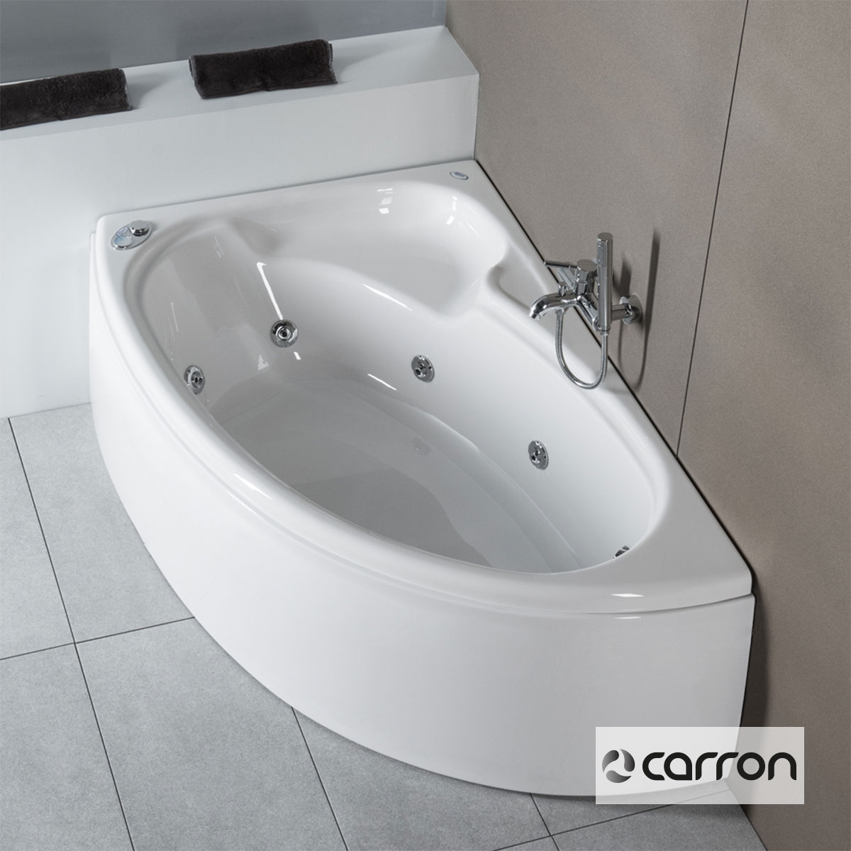 Μπανιέρα DOVE 155×95 ακρυλική βαρέως τύπου CARRONITE δεξιά χωρητικότητας 190L, με σύστημα υδρομασάζ με: ηλεκτρονικό on/off, 8 jet chrome, μοτέρ 1,75 hp, υποβρύχιο φωτισμό Led, αισθητήρα στάθμης νερού & πλαίσιο στήριξης, CARRON Αγγλίας