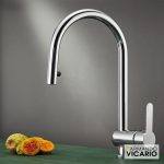 Μπαταρία νεροχύτου θερμομικτική Base με υψηλό περιστρεφόμενο ρουξούνι και συρόμενο ντους