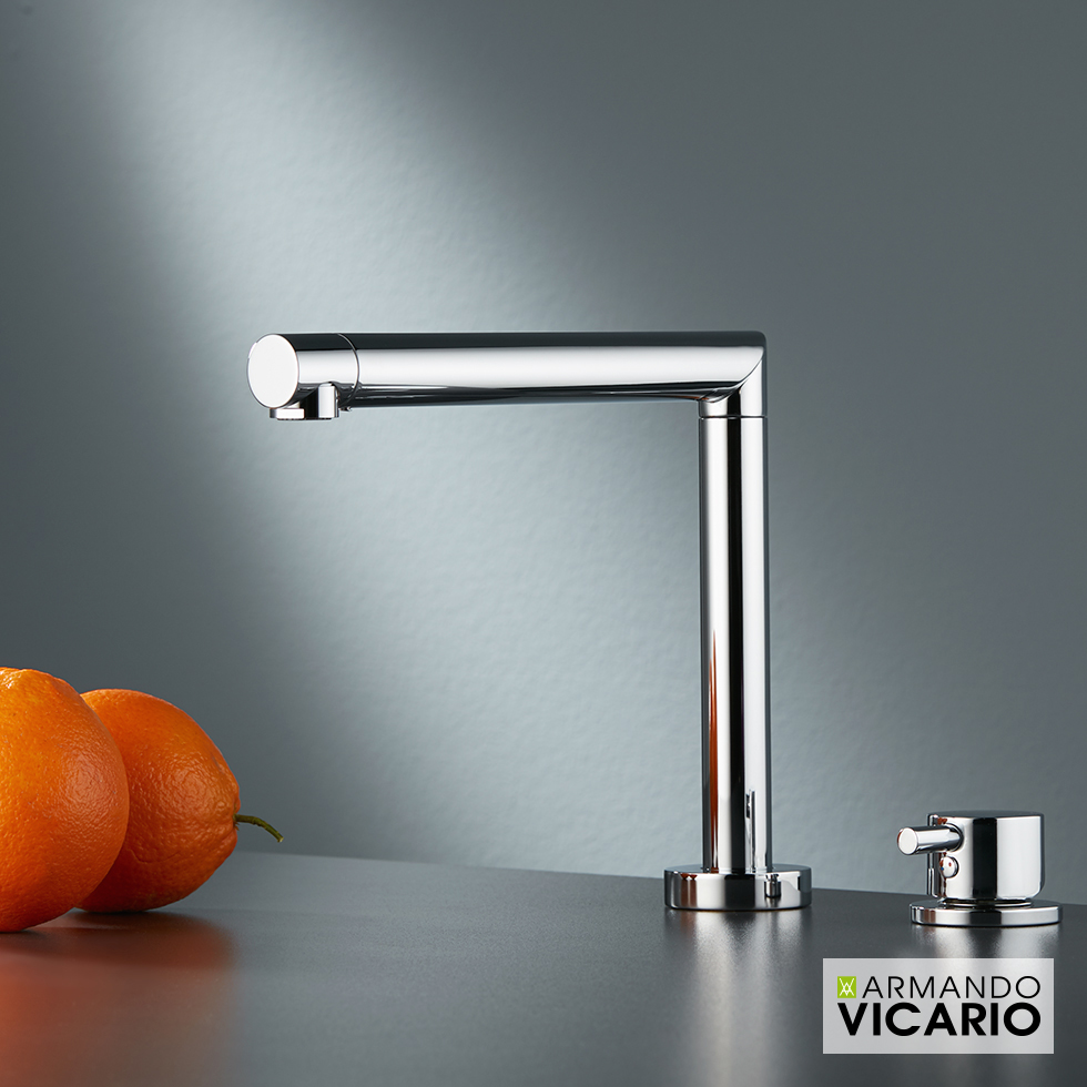 Μπαταρία νεροχύτου θερμομικτική CONO 2 οπών με βυθιζόμενο ρουξούνι. Ελάχιστο ύψος: 4,6 εκ.