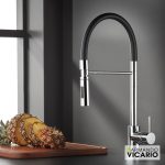 Μπαταρία νεροχύτου θερμομικτική Fluo με υψηλό περιστρεφόμενο ρουξούνι με εύκαμπτο σωλήνα ντους 2 λειτουργιών (shower/spray)