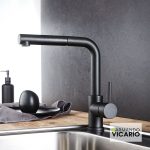 Μπαταρία Νεροχύτη Κουζίνας Fluo Vicario Black Matt