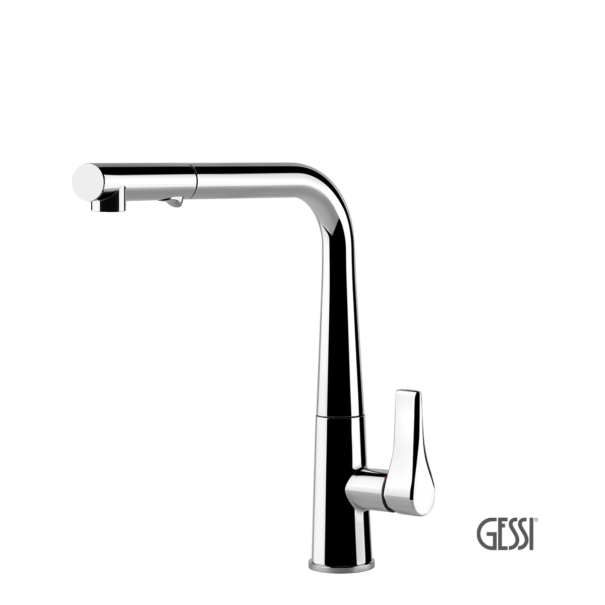 Μπαταρία νεροχύτου θερμομικτική PROTON με περιστρεφόμενο ρουξούνι και συρόμενο ντους, GESSI Ιταλίας