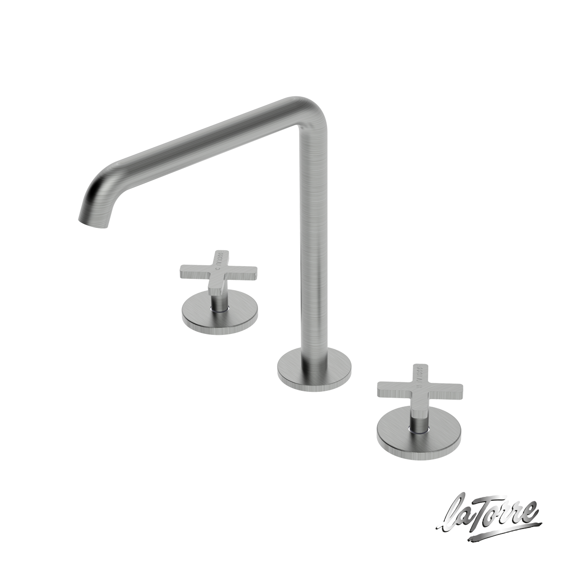 Μπαταρία Νιπτήρα Επικαθήμενη 3 Οπών Με Βαλβίδα Clic-Clac Εlle Cross La Torre Inox