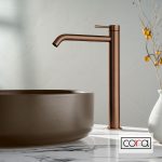 Μπαταρία νιπτήρος θερμομικτική CORA υψηλή για επιτραπέζιους νιπτήρες, με βαλβίδα clic-clac