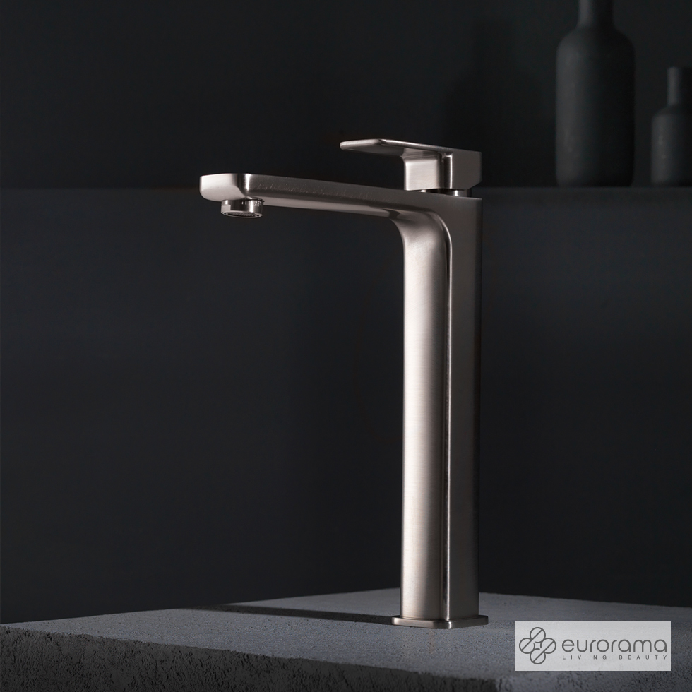 Μπαταρία Νιπτήρα Υψηλή Με Βαλβίδα Clic-Clac Quadra Eurorama Inox