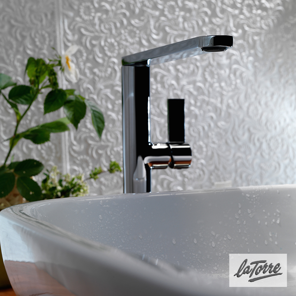Μπαταρία νιπτήρος θερμομικτική TAYA υψηλή για επιτραπέζιους νιπτήρες με βαλβίδα clic-clac, LA TORRE Ιταλίας