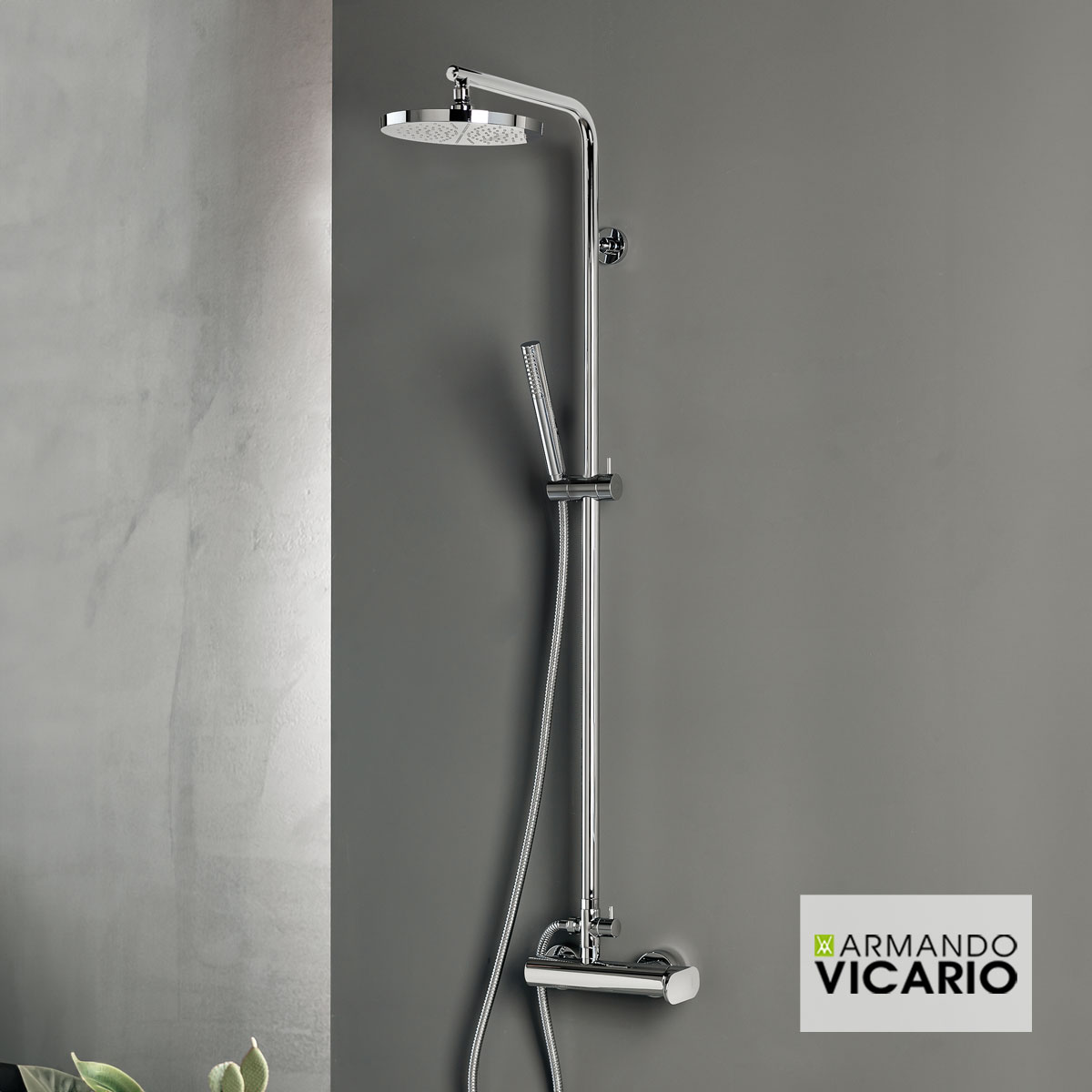 Μπαταρία Ντουζιέρας Με Κεφαλή Και Κολώνα Μη Ρυθμιζόμενου Ύψους Slim Vicario Chrome