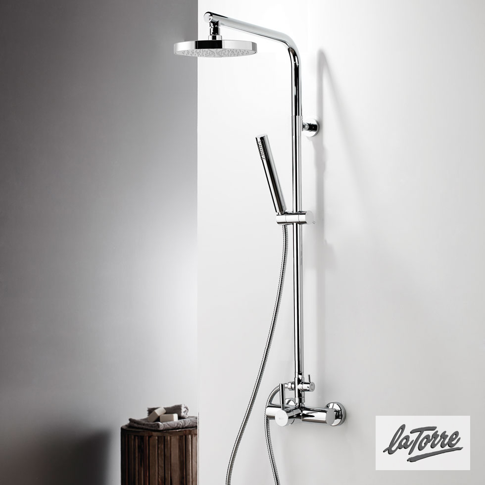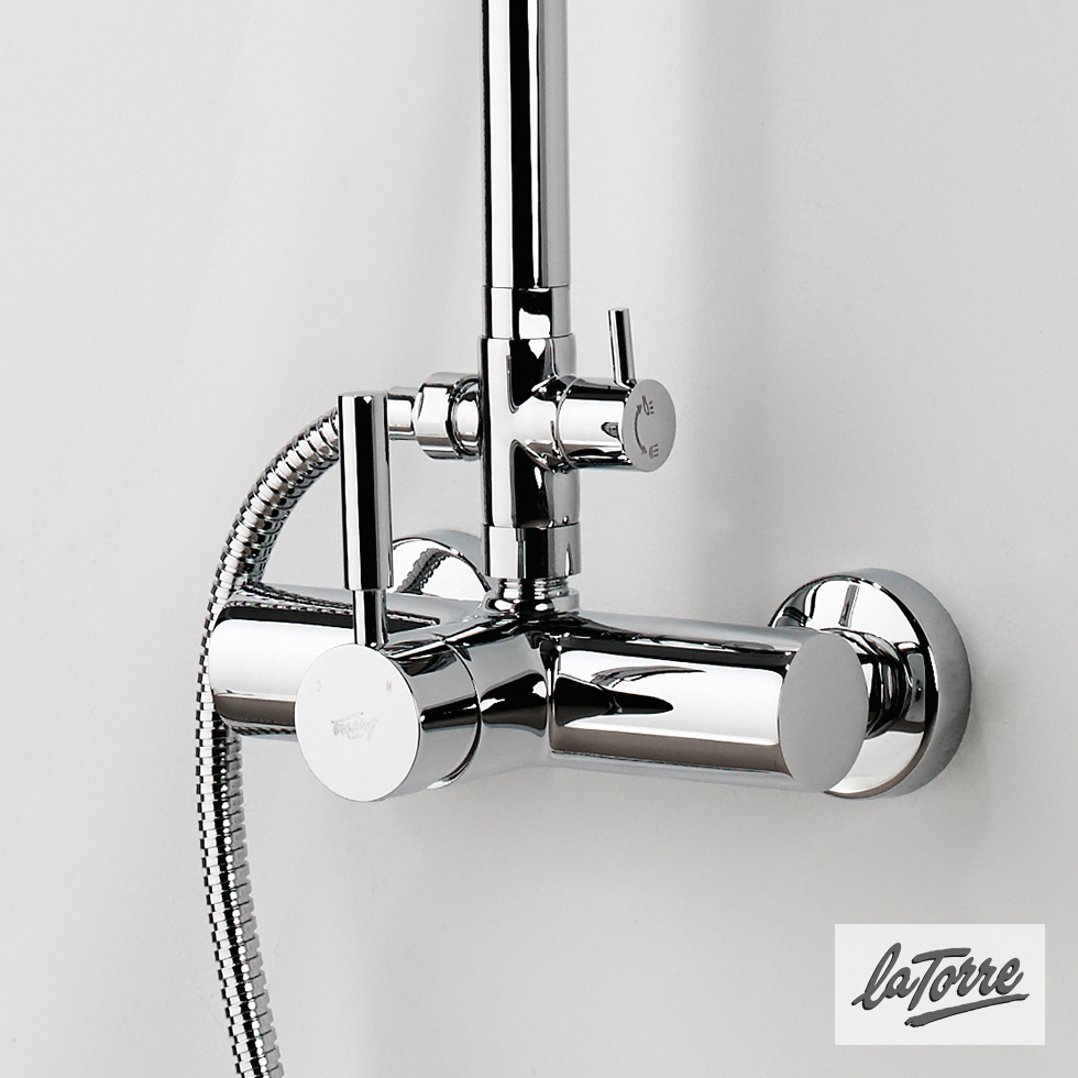 Μπαταρία Ντουζιέρας Με Κεφαλή Και Κολώνα Μη Ρυθμιζόμενου Ύψους, Τech La Torre Chrome