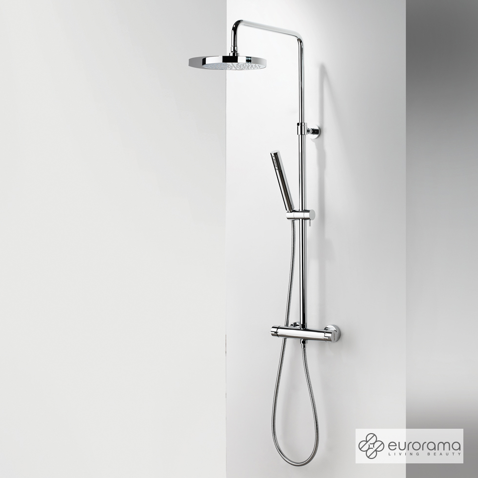 Μπαταρία ντουζιέρας θερμομικτική 2 εξόδων με κολώνα ρυθμιζόμενου ύψους 76-137 εκ., κεφαλή ντουζ στρόγγυλη Φ20 εκ., τηλέφωνο anticalcare & άθραυστο σπιράλ 1.5m, EURORAMA Ιταλίας