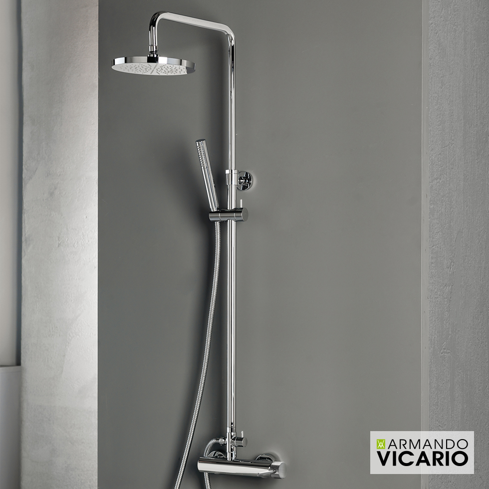 Μπαταρία ντουζιέρας θερμομικτική INDUSTRIAL 2 εξόδων με κολώνα Φ20/25 mm ρυθμιζόμενου ύψους 83-144 cm, ανακλινόμενη κεφαλή Φ20 cm & τηλέφωνο anticalcare με άθραυστο σπιράλ 1.5m, VICARIO Ιταλίας
