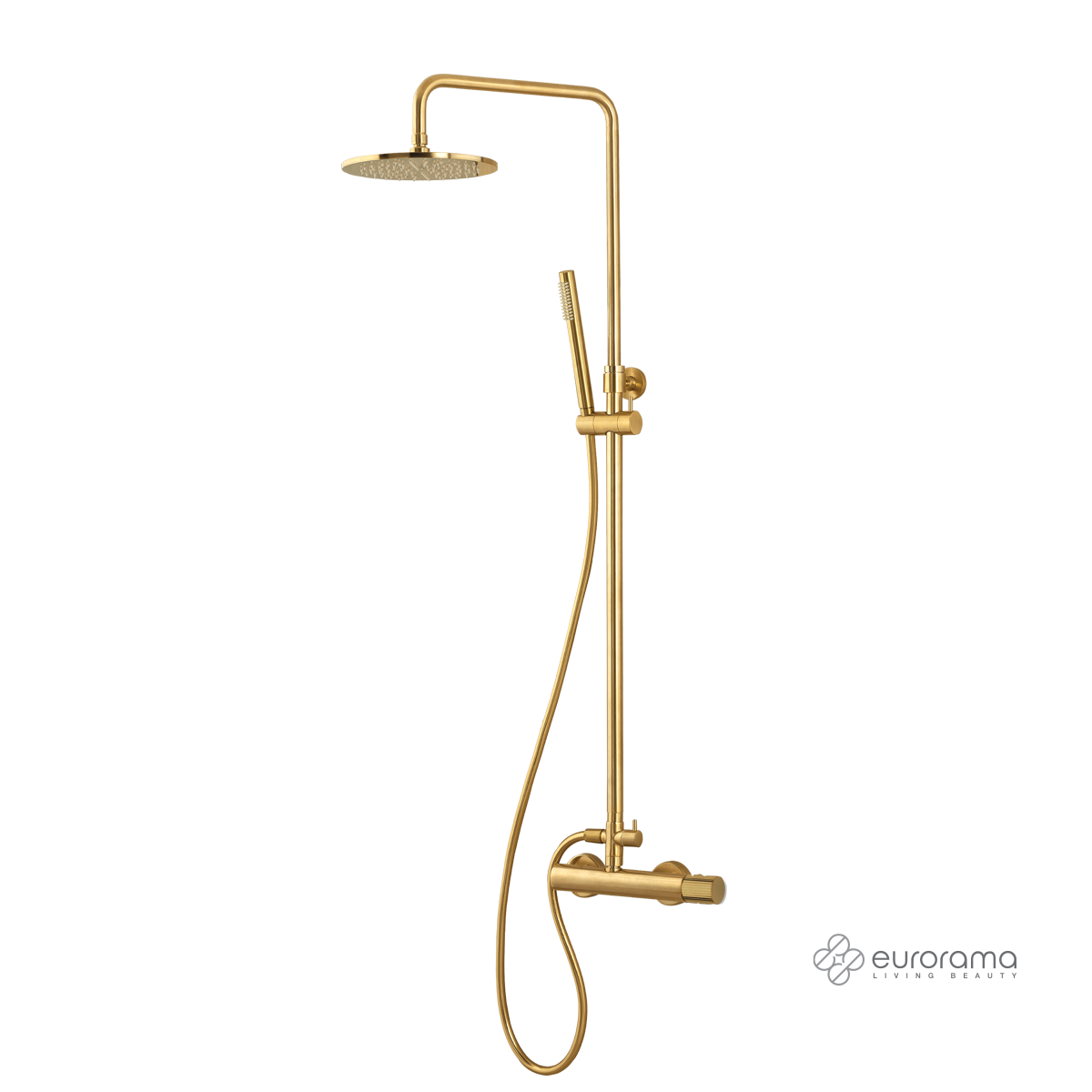 Μπαταρία Ντουζιέρας Με Κεφαλή Και Κολώνα Ρυθμιζόμενου Ύψους Oso Brushed Gold