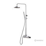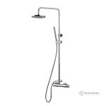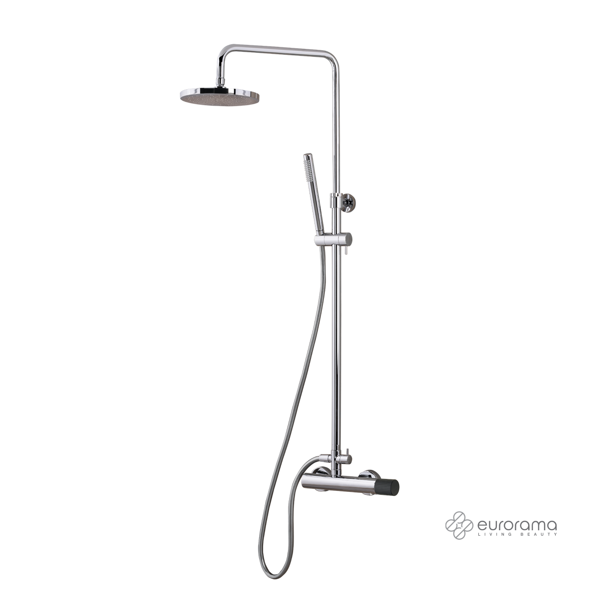 Μπαταρία ντουζιέρας θερμομικτική OSO 2 εξόδων με κολώνα Φ20/25 mm ρυθμιζόμενου ύψους 83-144 cm, ανακλινόμενη κεφαλή Φ20 cm &τηλέφωνο με σπιράλ PVC 1.5m, EURORAMA Ιταλίας