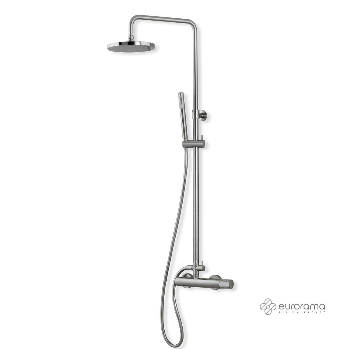 Μπαταρία ντουζιέρας θερμομικτική OSO 2 εξόδων με κολώνα Φ20/25 mm ρυθμιζόμενου ύψους 83-144 cm, ανακλινόμενη κεφαλή Φ20 cm &τηλέφωνο με σπιράλ PVC 1.5m, EURORAMA Ιταλίας