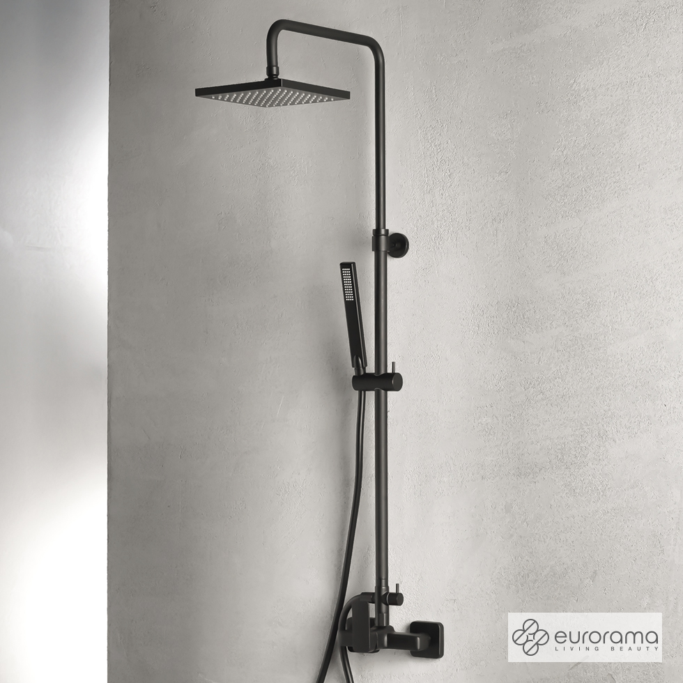 Μπαταρία Ντουζιέρας Με Κεφαλή Και Κολώνα Ρυθμιζόμενου Ύψους Quadra Black Matt