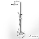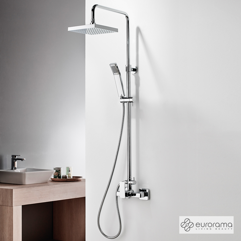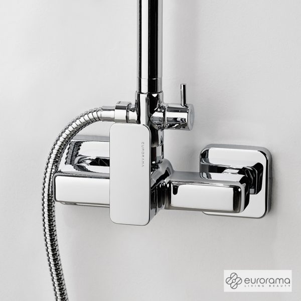 Μπαταρία ντουζιέρας θερμομικτική QUADRA 2 εξόδων με κολώνα Φ20/25 mm ρυθμιζόμενου ύψους 83-144 cm, ανακλινόμενη κεφαλή 20×20 cm & τηλέφωνο Anticalcare με άθραυστο σπιράλ 1.5m, EURORAMA Ιταλίας