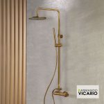 Μπαταρία Ντουζιέρας Με Κεφαλή Και Κολώνα Ρυθμιζόμενου Ύψους Slim Vicario Antique Brass