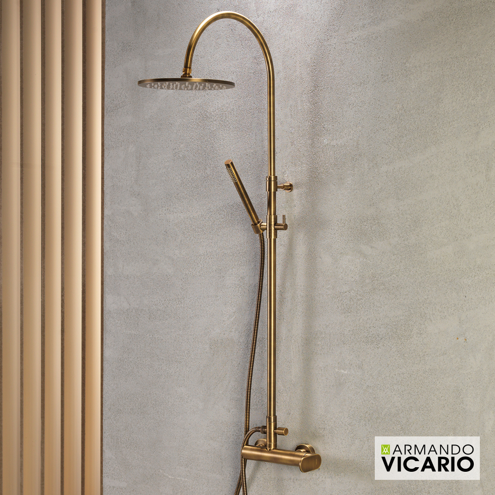 Μπαταρία Ντουζιέρας Με Κεφαλή Και Κολώνα Ρυθμιζόμενου Ύψους Slim Vicario Antique Brass