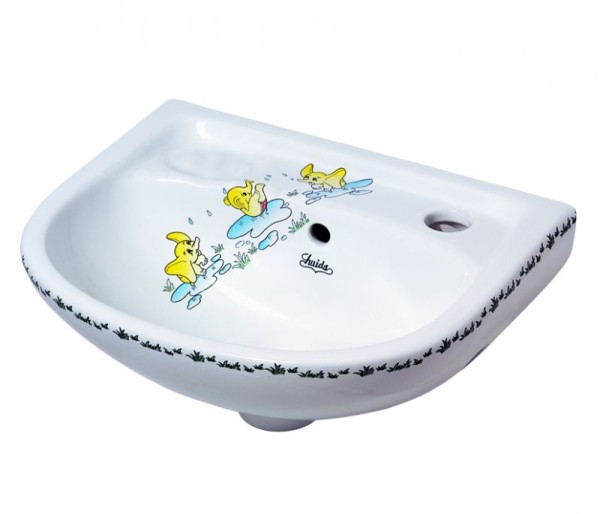 Νιπτήρας πορσελάνης με decor της HUIDA, για τοποθέτηση στον τοίχο με στριφώνια.