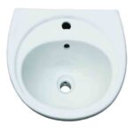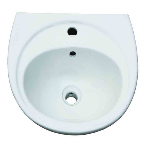 Νιπτήρας πορσελάνης στρογγυλός για τοποθέτηση στον τοίχο και οπή για τοποθέτηση μπαταρίας.