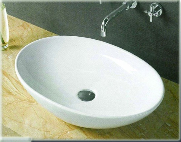 Νιπτήρας πορσελάνης λευκός οβάλ επικαθήμενος σε πάγκο