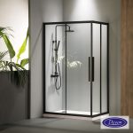 Καμπίνα γωνιακής εισόδου DEVON FLOW CORNER ENTRY 110×120 με 2 σταθερά & 2 συρόμενα φύλλα. Διαστάσεις: 107-109 x 117-119 / ύψος 1