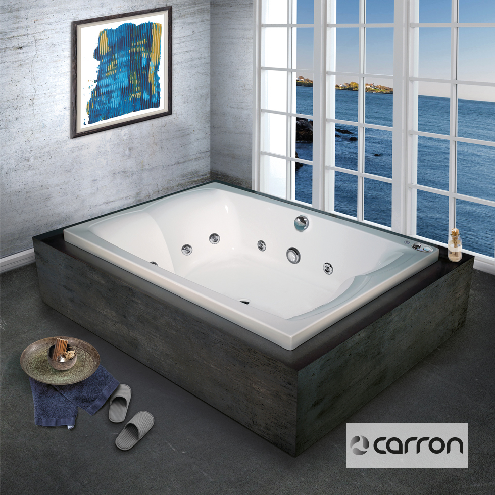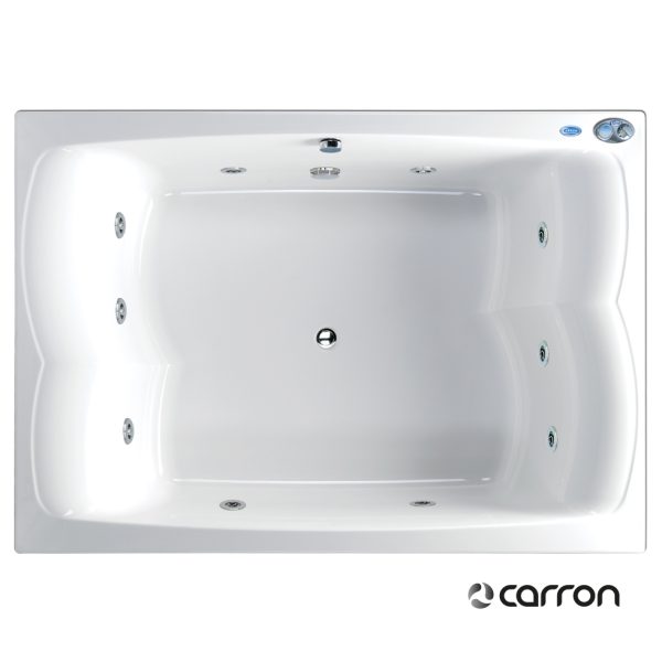 Μπανιέρα CELCIUS DUO 200×140 ακρυλική βαρέως τύπου CARRONITE χωρητικότητας 560L, με σύστημα υδρομασάζ με: ηλεκτρονικό on/off, 10 jet chrome, μοτέρ 1,75 hp, υποβρύχιο φωτισμό Led, αισθητήρα στάθμης νερού & πλαίσιο στήριξης, CARRON Αγγλίας