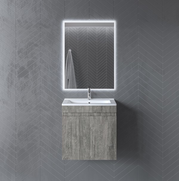 Έπιπλο Μπάνιου Lydia 183 Σταχτί Με Καθρέπτη Led 9Sly060Be183 Πάγκο 57X44X57Cm