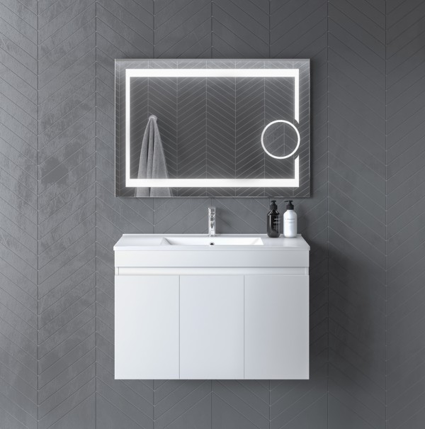 Έπιπλο Μπάνιου LYDIA 188 Λευκό με καθρέπτη LED και μεγεθυντικό φακό για μακιγιάζ Led 9SLY090GL188 Πάγκο 87x44x60cm Αποτελείται από: •Πάγκος κρεμαστός LYDIA 90 διαθέτει ευρύχωρο ντουλάπι με δύο πόρτες για την τοποθέτηση και οργάνωση αντικειμένων. •Καθρέφτης LED 100×70 Καθρέφτης εξαιρετικής ποιότητας Led προσδίδει στυλ και άνεση στο μπάνιο σας. Με διακόπτη στο κάτω μέρος, αλλά μπορεί να γίνει και σύνδεση με τον κεντρικό διακόπτη του μπάνιου. Πιστοποιημένο με IP44 για ασφαλή χρήση σε μπάνια. Ουδέτερος φωτισμός LED. •Νιπτήρας SLIM 90 σε μοντέρνο εργονομικό σχεδιασμό, υψηλής αισθητικής. Η γυαλιστερή πορσελάνινη υφή του και το γεωμετρικό σχήμα του, αναδεικνύει την εμφάνιση του. Διαθέτει οπή υπερχείλισης. Μελαμίνη 16mm πάχος Το Έπιπλο Μπάνιου Lydia με Led καθρέπτη αποτελεί ένα στυλάτο και μοντέρνο κομμάτι με εργονομικό σχεδιασμό αλλά και λειτουργικότητα. • Μηχανισμοί για απαλό και αθόρυβο κλείσιμο • Εύκολη τοποθέτηση • Ετοιμοπαράδοτα προϊόντα Δεν συμπεριλαμβάνεται η μπαταρία. Διατίθεται έτοιμο συναρμολογημένο.