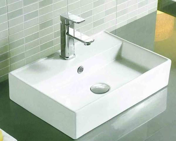 Νιπτήρας πορσελάνης λευκός τετράγωνος τοποθέτηση στον τοίχο αλλά και επικαθήμενος σε πάγκο με οπή για μπαταρία χωρίς υπερχείληση.