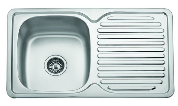 MINOX -201 νεροχυτης με 1 γουρνα μονοκομματη και πλαινο διασταση 80*48*16*0,6mm συνοδευεται από σιφωνια και βαλβιδα