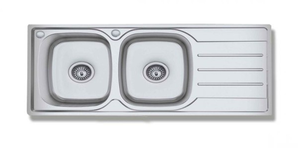 νεροχυτης με 2 γουρνες & παγκο διασταση 116*50*18,5*0,6mm συνοδευεται από σιφωνια και βαλβιδα