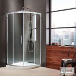 Καμπίνα 1/4 κύκλου AXIS QUADRANT 90 με 2 σταθερά & 2 συρόμενα φύλλα. Διαστάσεις: 87-89 x 87-89 / ύψος 185 εκ. Άνοιγμα εισόδου 53εκ. Κρύσταλλο ασφαλείας Clear (διαφανές) 6 χιλ. με επεξεργασία Clean Glass