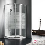 Καμπίνα 1/4 κύκλου STARLET QUADRANT 90 με 2 σταθερά & 2 συρόμενα φύλλα. Διαστάσεις: 87-89 x 87-89 / ύψος 180 εκ. Άνοιγμα εισόδου 52 εκ. Κρύσταλλο ασφαλείας Stripes (με ρίγες) 5 χιλ.