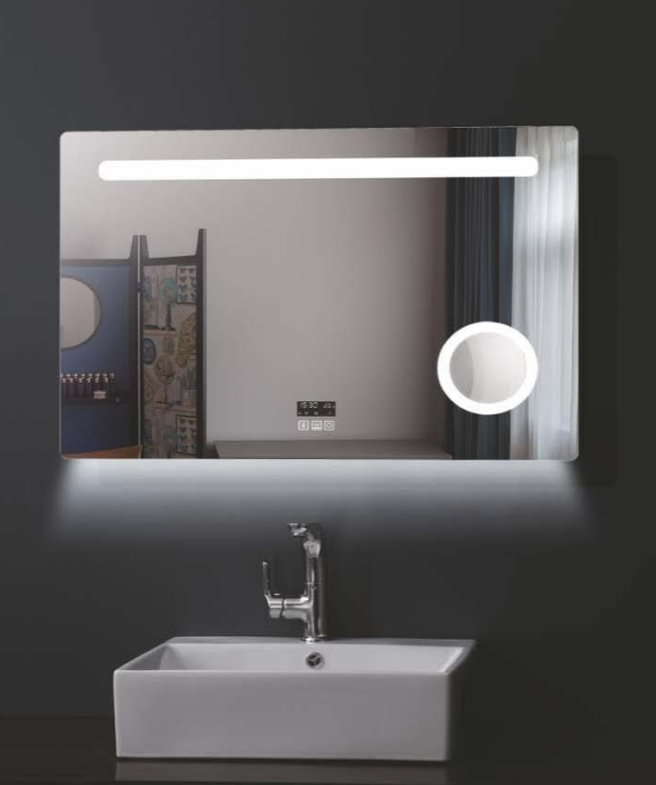 LCD οθόνη 10×4 / 8×6 , με ένδειξη ημερομηνίας , ώρας , θερμοκρασίας , φωτισμού , ραδιόφωνο , Media Player μέσω Bluetooth,(Περιέχει & STEREO Hi-Fi ηχεία x2 (Η οθόνη διαθέτει και δωρεάν Hands Free) Διαθέτει πολλαπλούς διακόπτες αφής No 11. (Αν στον καθρέφτη προστεθούν extra αντιθαμβωτικό ή απλίκες αυτές ανοιγοκλείνουν από την οθόνη αφής on-off)