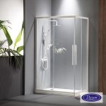 Καμπίνα γωνιακής εισόδου DEVON FLOW CORNER ENTRY 120×80 με 2 σταθερά & 2 συρόμενα φύλλα. Διαστάσεις: 117-119 x 77-79 / ύψος 195 εκ. Άνοιγμα εισόδου 59 εκ. Κρύσταλλο ασφαλείας Clear (διαφανές) 6 χιλ. με επεξεργασία Clean Glass