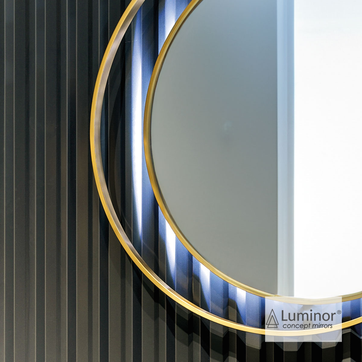 Καθρέπτης ECLIPSE Φ82 φωτιζόμενος LED, με Bronze πλαίσια ανοξείδωτου χάλυβα με ασύμμετρη εσοχή, LUMINOR
