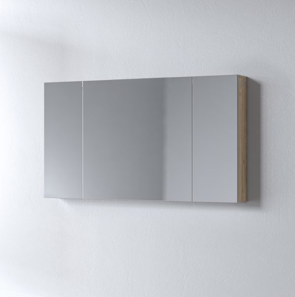 Καθρέφτης OMEGA BEIGE OAK 120 3MOM120BO0W με ντουλάπια 120x14x65cm Καθρέφτης OMEGA BEIGE OAK 120. Τρίπορτος καθρέφτης με δύο χώρους αποθήκευσης και διαχωριστικό ράφι στο καθένα για εξοικονόμηση χώρου στον πάγκο σας. Με τα εσωτερικά ράφια οργανώνετε καλύτερα την αποθήκευση χρηστικών αντικειμένων καθημερινής χρήσης για όλα τα μέλη της οικογένειάς σας. Μελαμίνη 16mm πάχος •Πρακτικοί αποθηκευτικοί χώροι Δεν συμπεριλαμβάνεται το φωτιστικό. Διατίθεται έτοιμο συναρμολογημένο.