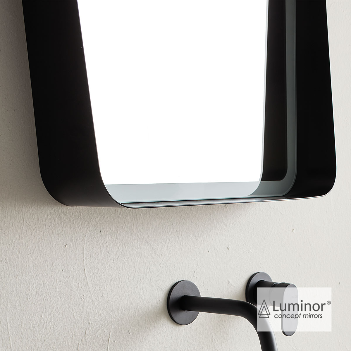 Καθρέπτης VIRGO, 50×90 εκ. φωτιζόμενος LED, με μαύρο μεταλλικό πλαίσιο με ασύμμετρη εσοχή, LUMINOR